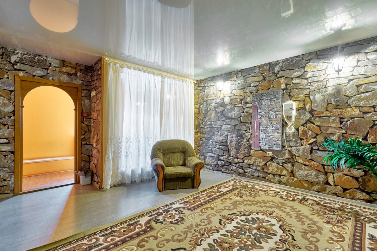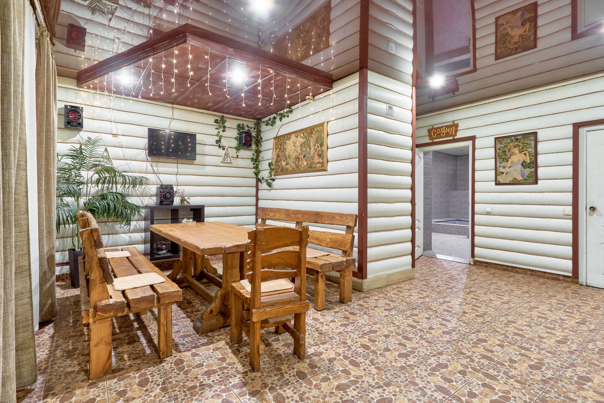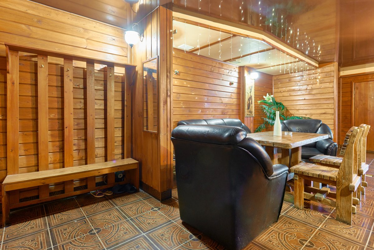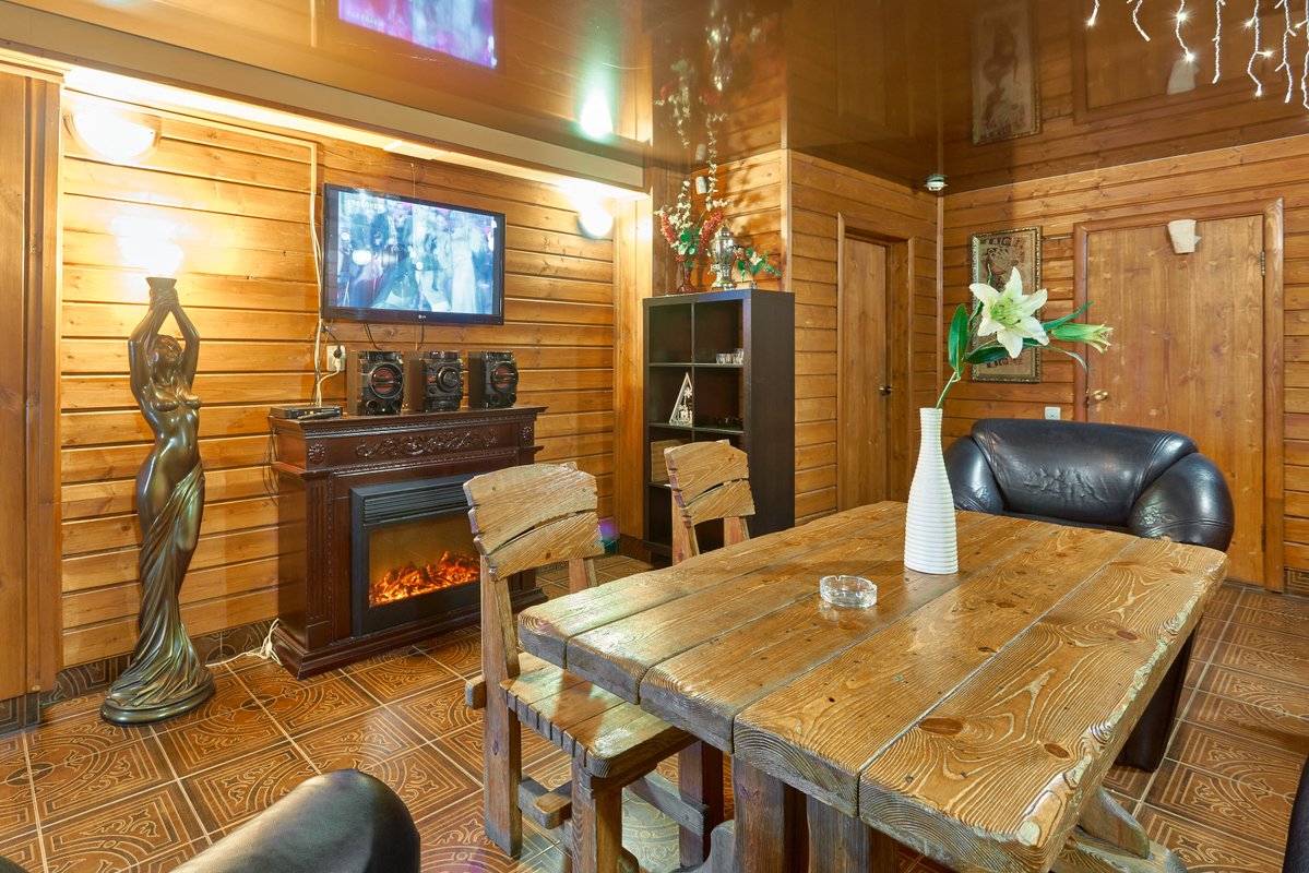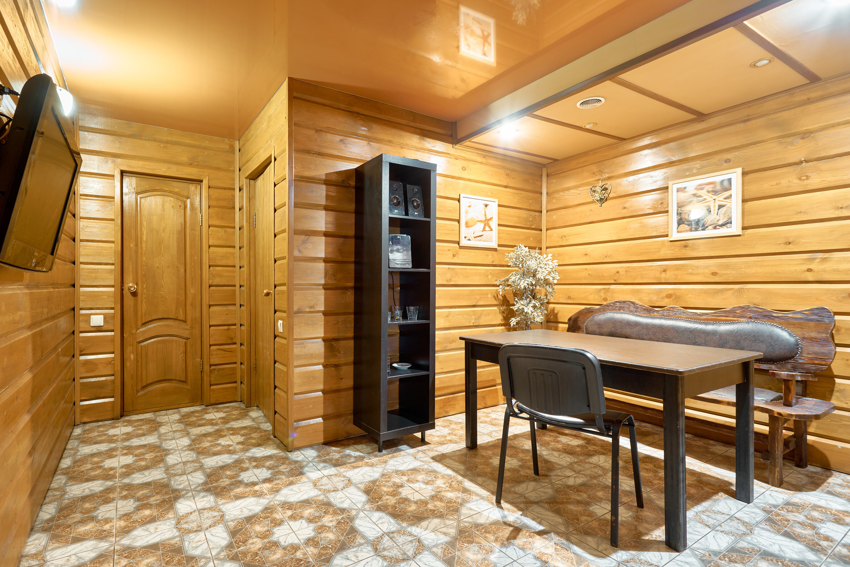 Не хочется в бассейн? Не беда! Вместо этого можно передохнуть в нашей комнате отдыха. Мы ставили своей целью создать здесь уютный, практичный интерьер из преимущественно натуральных, безопасных материалов, подобрать мебель, которая будет в равной степени удобной и красивой. Надеемся, что вы его оцените! Для поддержания атмосферы отдыха мы можем предложить вам кальян, камин и караоке. Также у нас вы можете приобрести блюда русской кухни, а при необходимости прийти и со своей едой - мы не возражаем! Главное помните, что плотная трапеза незадолго перед посещением парной - это не самая удачная идея, по мнению докторов. А вот после парной можно трапезничать смело!