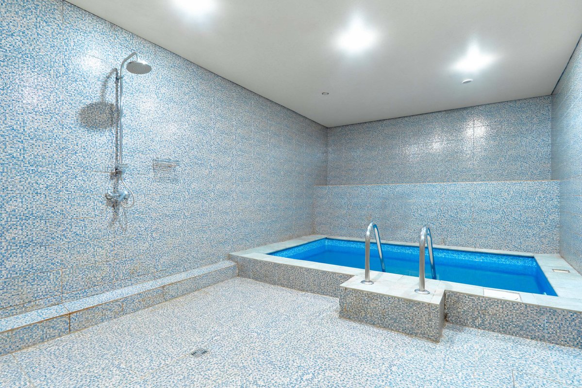 А если вы входите в число тех счастливчиков, кто хорошо реагирует на смену температур - вас ждут джакузи и бассейн. Именно контрастным водным процедурам приписывается максимально выраженный тонизирующий и общеукрепляющий эффект. Мы тщательно следим за качеством купальной воды, у нас установлено современное оборудование для ее очистки - ведь мы знаем, насколько это важно для хорошего самочувствия и спокойствия наших гостей.